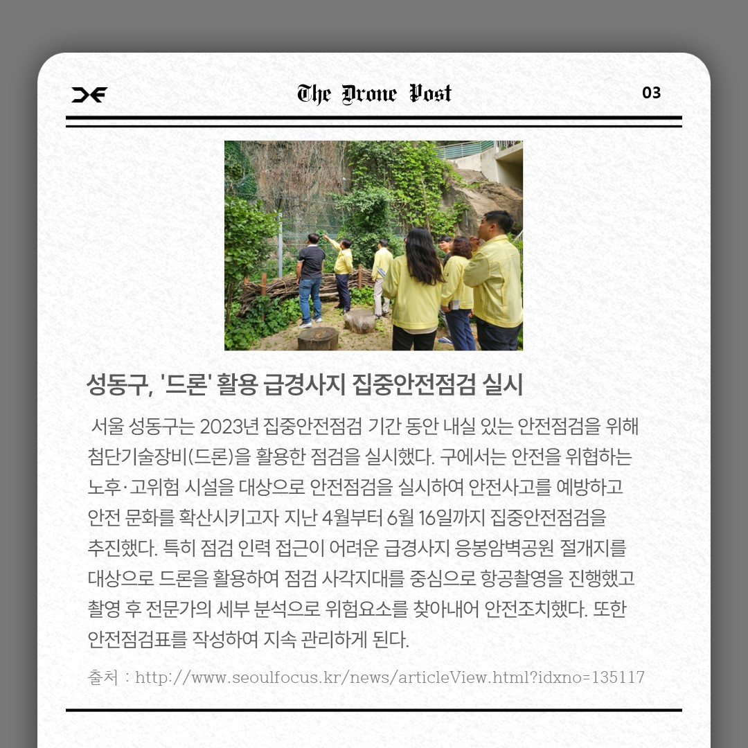 성동구, '드론' 활용 급경사지 집중안전점검 실시